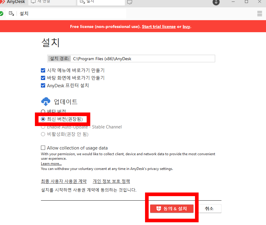 다운로드가 완료되면 설치 파일을 실행시켜 주시길 바랍니다. 그러면 위와 같은 화면이 나옵니다. 화면 가운데 보이는 설치 버튼을 클릭을 해주시고 설치경로와 바로가기 설정 여부, 설치 파일을 선택해 주시길 바랍니다. 그다음 동의&설치 버튼을 눌러주시면 되겠습니다.